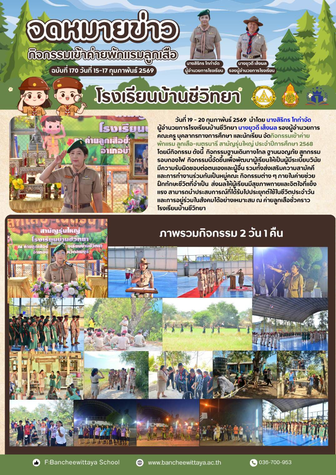 กิจกรรมกิจกรรมเข้าค่ายพักแรมลูกเสือ Posted on March 9, 2026 by admin admin แจ้งกำหนดปิดภาคเรียนที่ 2 ปีการศึกษา 2568 และเปิดภาคเรียนที่ 2 ปีการศึกษา 2569 กิจกรรมเปิดบ้านวิชาการ Open House